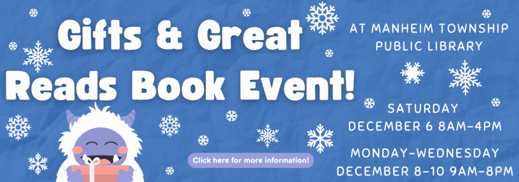 Would you like to get our monthly “In the Stacks” newsletter? Use the Manheim Township’s Notify Me feature to sign up. Enter your email address and select 04. Library News and Information under the News Flash section.